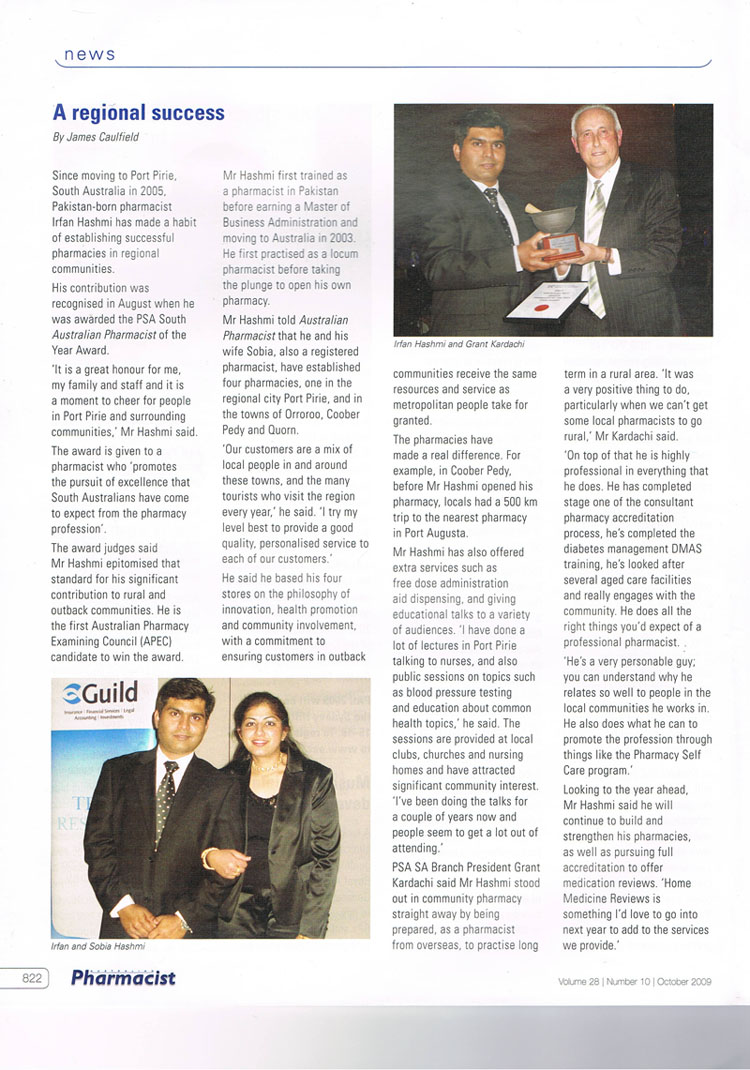 • Winner SA pharmacist of the year 2009 (Irfan Hashmi)