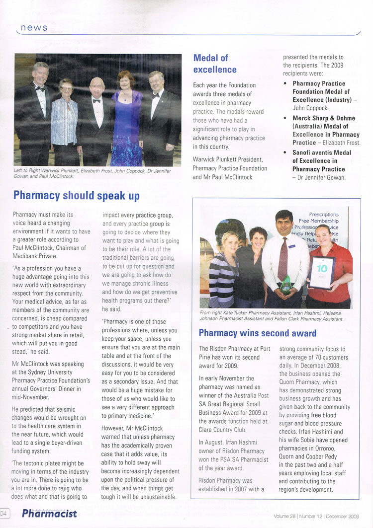 • Winner SA Great Small Business Award 2009 (Risdon Pharmacy)
